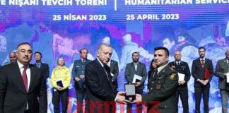 Türkiyə prezidenti hərbi qulluqçumuzu təltif edib – FOTO