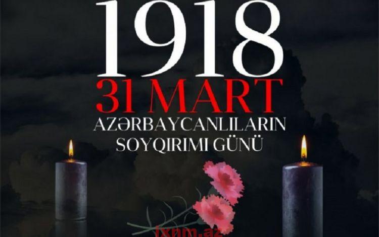 1918-ci il martın 31-də Bakı şəhərində azərbaycanlıların kütləvi qırğınına başlanılıb. 3 aprel tarixinə qədər Bakı şəhərində və Bakı quberniyasının müxtəlif bölgələrində, eləcə də Qarabağ, Naxçıvan, Şamaxı, Quba, Xaçmaz, Lənkəran, Salyan, Zəngəzur və digər ərazilərdə Bakı Soveti qoşunlarının və daşnak erməni silahlı dəstələrinin azərbaycanlılara qarşı soyqırımı nəticəsində rəsmi mənbələrə əsasən on minlərlə soydaşımız məhz etnik və dini mənsubiyyətinə görə öldürülüb.
