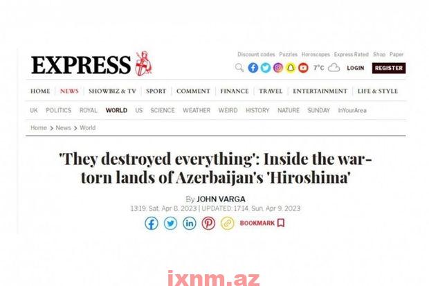 Britaniyanın nüfuzlu “Express” nəşrində jurnalist Con Varqanın “Onlar hər şeyi məhv ediblər: Azərbaycan “Hirosima”sının dağıdılmış torpaqlarında” sərlövhəli məqaləsi dərc edilib.