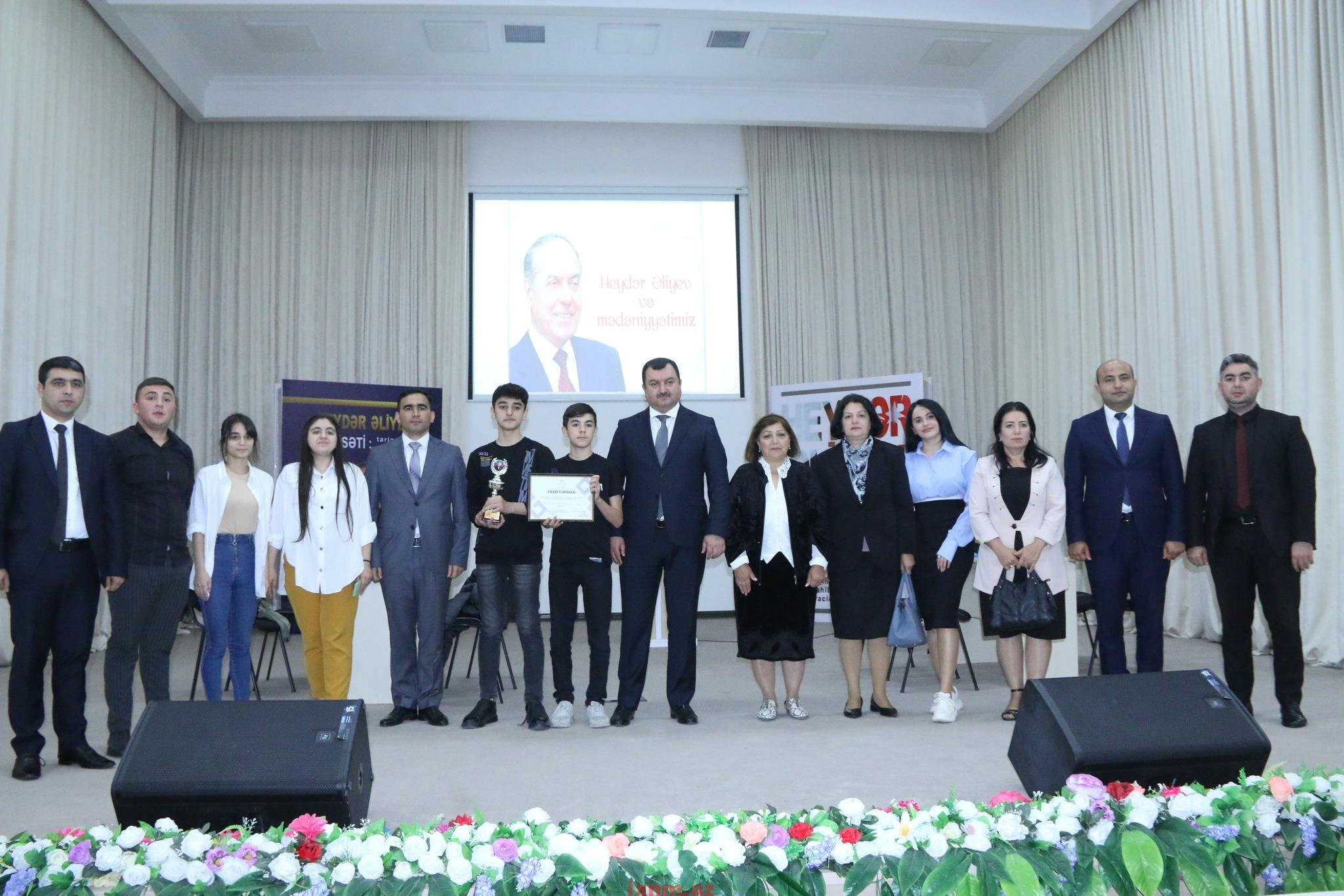Ulu öndər Heydər Əliyevin anadan olmasının 100-cü ildönümü münasibəti ilə Bərdə Regional Mədəniyyət İdarəsinin əhatə etdiyi rayon və şəhərlərdə (Bərdə, Tərtər, Yevlax, Mingəçevir) yerləşən tam orta məktəblərin şagirdləri arasında keçirilən “Heydər Əliyev və Mədəniyyətimiz” adlı bilik yarışmasının final mərhələsi baş tutub. Bərdə Regional Mədəniyyət İdarəsinin təşkilatçılığı, Qarabağ Regional və Mərkəzi Aran Regional Təhsil İdarələrinin iştirakı ilə keçirilən müsabiqənin məqsədi Ulu öndər Heydər Əliyev irsinin öyrənilməsi, təbliği, milli-mənəvi dəyərlərimizin gələcək nəsillərə aşılanmasıdır. Yarış torpaqlarımızın ərazi bütövlüyü uğrunda canlarından keçmiş şəhidlərimizin və Ulu öndər Heydər Əliyevin əziz xatirəsinin bir dəqiqəlik sükutla yad edilməsi ilə başlanıb. Çıxış edən Bərdə Regional Mədəniyət İdarəsinin rəisi Səxavət Məmmədov Ulu Öndər Heydər Əliyevin çoxşaxəli fəaliyyətindən, Azərbaycanın inkişafı və milli dövlətçiliyin gücləndirilməsi istiqamətində misilsiz tarixi xidmətlərindən, böyük xilaskarlıq missiyasından danışıb. İdarə rəisi onu da bildirib ki, Ulu öndər Heydər Əliyev irsi və siyasəti onun layiqli davamçısı Müzəffər Ali Baş komandan İlham Əliyev tərəfindən uğurla davam etdirilir. Final mərhələsində hər şəhər və ya rayon üzrə qalib komandalar iştirak edib. Final mərhələsinin birinci turunda Bərdə rayonunu təmsil edən “Zəfər Lideri”, Tərtər rayonunu təmsil edən “Volunteers” komandası, ikinci turda isə Mingəçevir şəhərini təmsil edən “Zəfər”, Yevlax şəhərini təmsil edən “Şuşa” komandası iştirak edib. Birinci turun qalibi olan Bərdənin “Zəfər Lideri” komandası və ikinci turun qalibi olan Mingəçevirin “Zəfər” komandası final mərhələsinin üçüncü turunda yarışıblar. Yarışmanın qalibi Bərdə rayonunu təmsil edən “Zəfər Lideri” komandası olub. Yarışda qalib olmuş komanda regional idarə tərəfindən Heydər Əliyevin 100 illik yubileyi münasibətilə hazırlanmış xüsusi kubok və Fəxri Fərmanla təltif olunub. Həmçinin, digər komandalara isə regional idarə tərəfindən yarışda iştirak etdiklərinə görə təşəkkürnamə təqdim edilib.