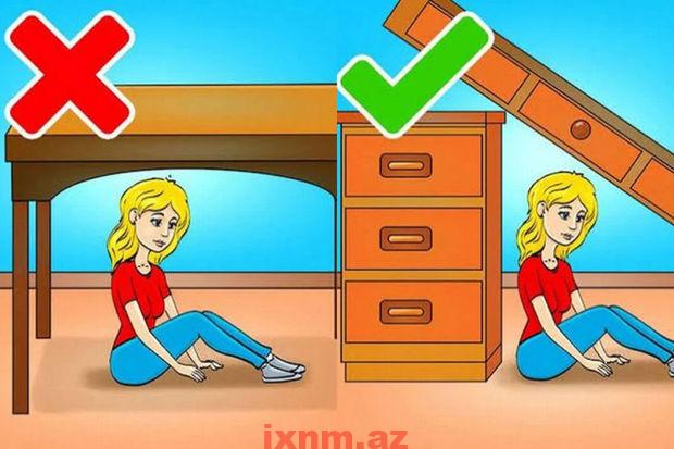 Zəlzələ zamanı diqqət etməli olduğumuz qaydaların siyahısını təqdim edirik: