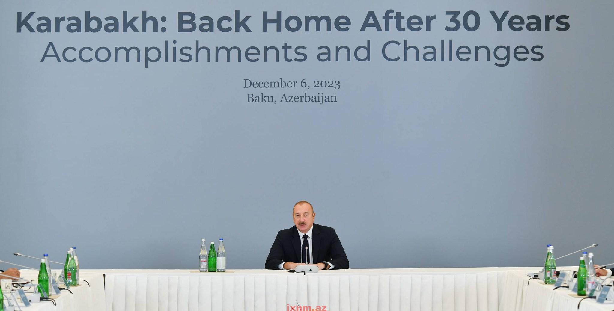 Prezident İlham Əliyevin 6 dekabr tarixində “Qarabağ 30 ildən sonra evə dönüş. Nailiyyətlər və çətinliklər” forumunda çıxışı bütün bu məsələlərdə dəqiq və detallı şəkildə ölkəmizin mövqeyini bir daha səsləndirilmişdir. Həmçinin işğaldan azad edilər ərazilərin ölkəmizin öz gücü hesabına yenidən bərpa edilməsi və məcburi köçkünlər üçün layiqli həyat şəraitinin yaradılması vurğulanmışdır.