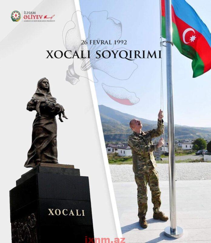Sizin soyqırımı harayınıza qulaqlarını tutan, özünü eşitməzlıyə qoyan dünyanın da laqeyd qaldığını hər birimiz gördük və yaşadıq, hamımız o gecənin vəhşət və dəhşətləri içində illərlə qıvrıla- qıvrıla yanıb qovrulduq… Buna dözə bilməyən Vətənin ƏSL OGLU və xalqımızın ƏSL LİDERİ heyrətamiz guc, qüvvə və siyasətlə Qarabağda və Xocalıda ucaltdığı bayraqlarımızla bu dünyanı da, onun erməni və ermənipərəstlərinı də mat qoydu!!! Ana Vətəni QARABAĞ və XOCALI adlı övladlarına əbədi qovuşdurdurmağı bacardı! Soyqırımına məruz qalan Xocalını və Xocalılıların didərgin ruhlarını eyni gündə sevindirən, rahatladan, böyük və dərin birgə dərdimizin məlhəminə çevrildi!!!