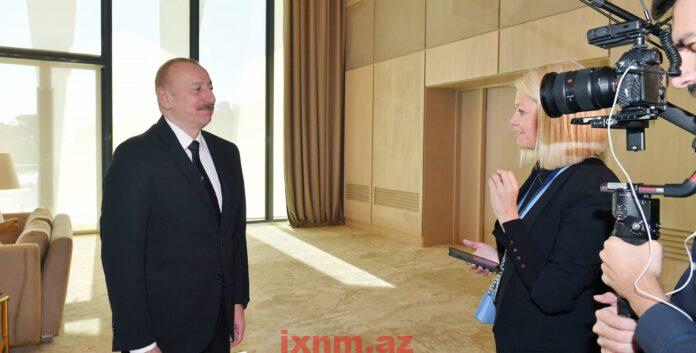 “Euronews”: Sizin çıxışınızda bir məqam xoşuma gəldi. Siz söylədiniz ki, neft və qaza malik ölkələr günahlandırılmamalıdır. Qazıntı yanacağına sahib olmaq onların günahı deyil. Siz söylədiniz ki, onlar ətraf mühitin mühafizəsi və yaşıl enerjiyə keçid məsələsi ilə necə məşğul olduqlarına görə qiymətləndirilməlidir. Siz həqiqətən də belə hesab edirsiniz, elə deyilmi?