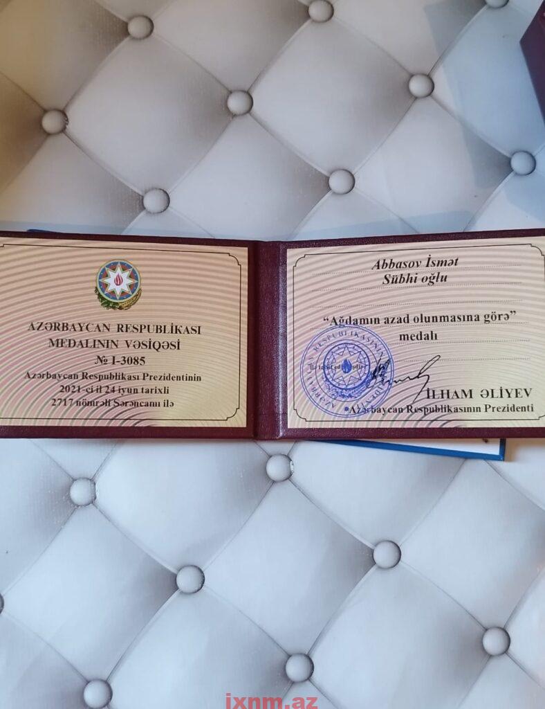 Qəhrəmanlığı ölkə Prezidenti cənab İlham Əliyevin sərəncamı ilə “Ağdamın azad olunmasına görə” medalına layiq görülmüş, snayperçi İsmət Abbasov və ölümündən sonra üç medala layiq görülmüş