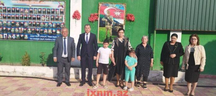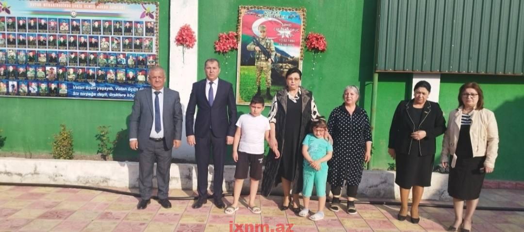 Ehtiram əlaməti olaraq həyətdə şəhid Oruc Cəfərovun və bütün şəhidlərinin xatirəsinə yaradılmış guşənin önündə şəhid Oruc Cəfərovun övladları ilə birlikdə şəkil çəkdirilib.