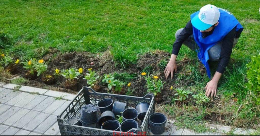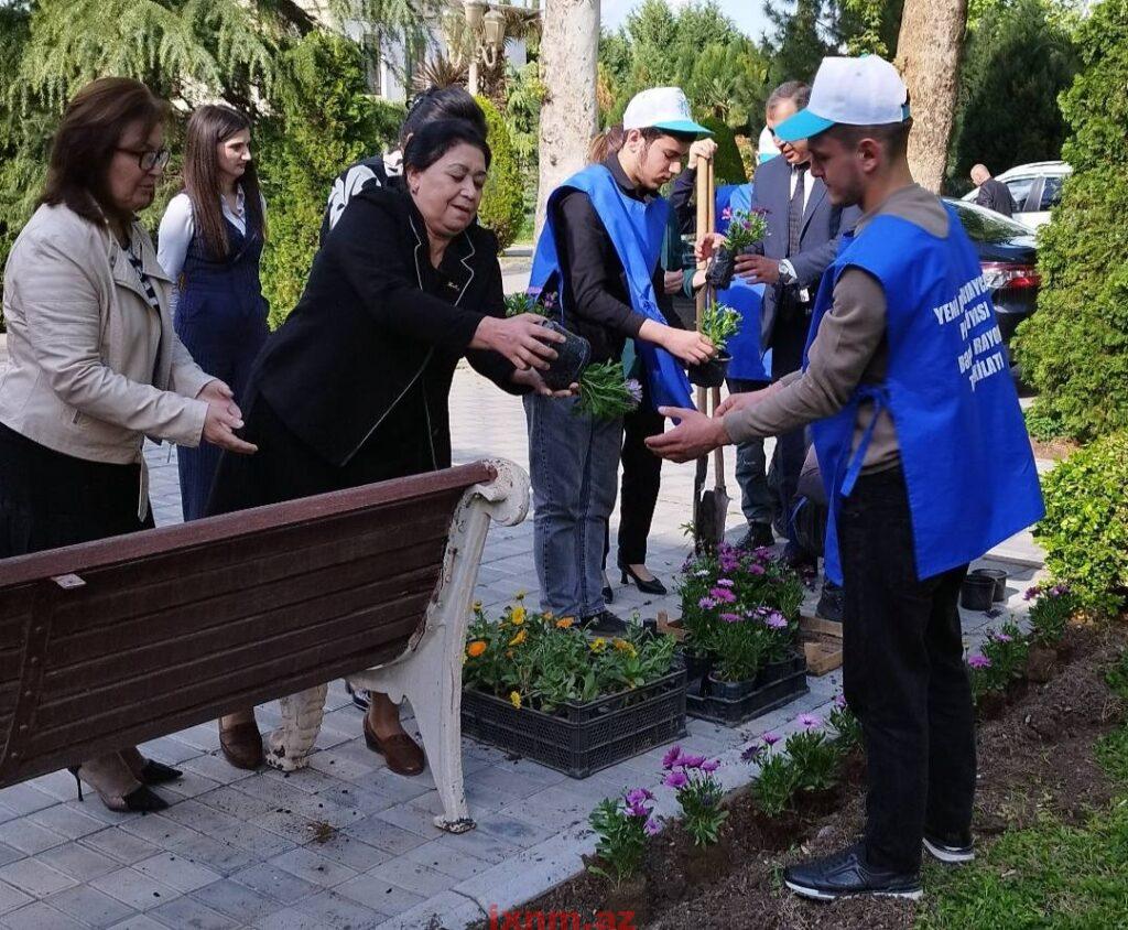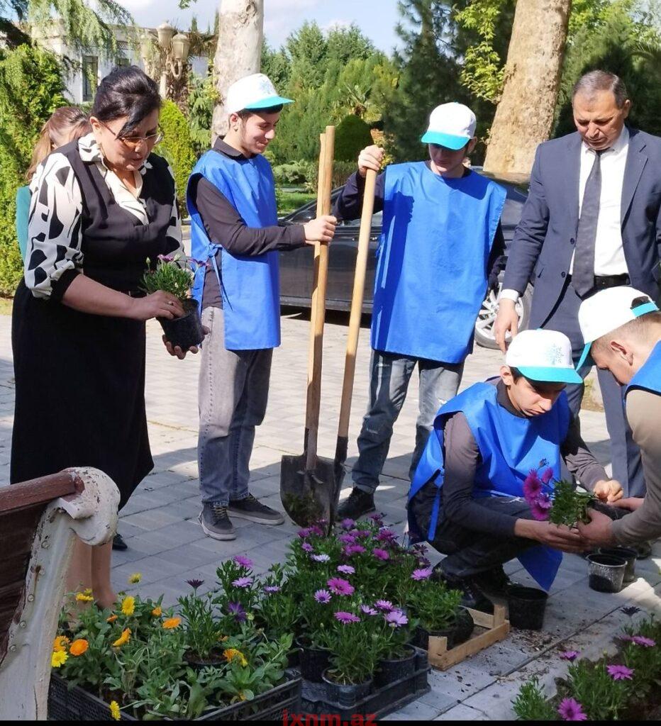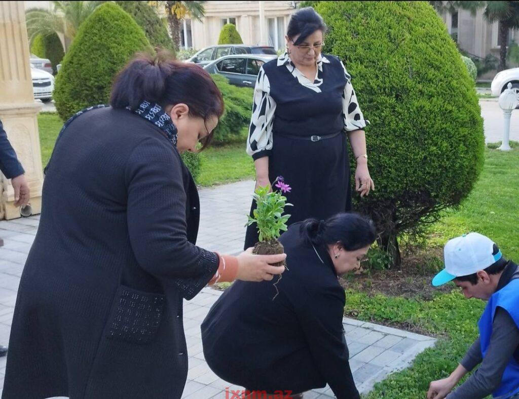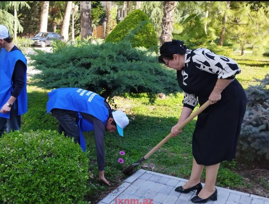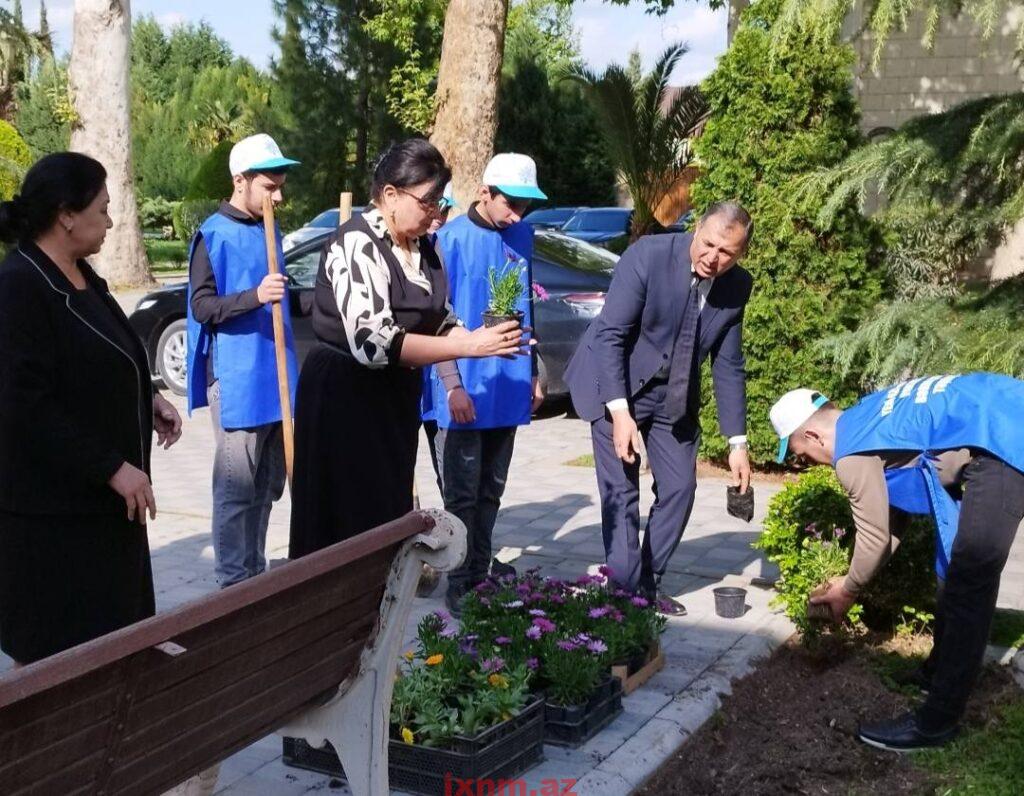 Aksiya zamanı binanın ətrafında təmizlik işləri aparılıb, ərazi qurumuş kollardan təmizlənib, yerinə yeniləri əkilib.